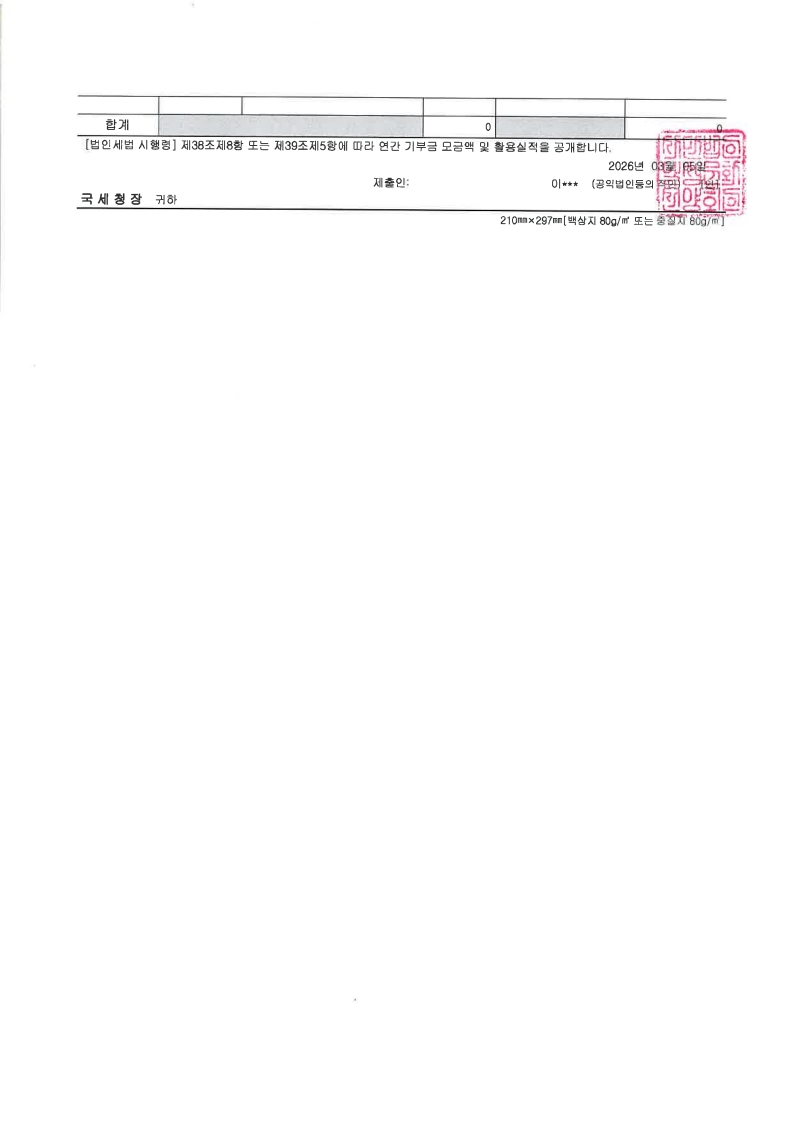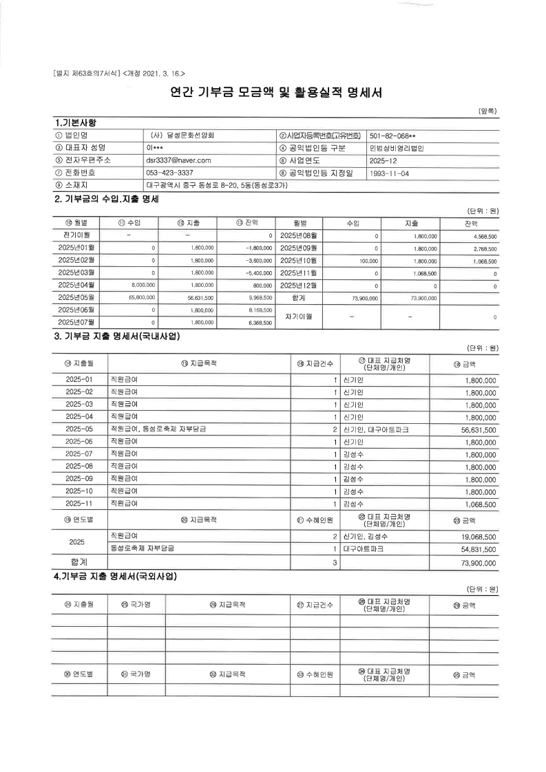 2025년 연간기부금 모금액 및 활용실적 명세서